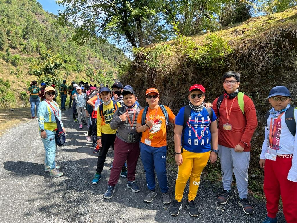 a forest after an apocalypse a waterfall and many rocks a house on a mountain sime pink flowers big rocks with some trees a waterfall, a lot of tree and a great view from the sky a cool landscape inside a town between two big buildings a great view of the sea above the mountain